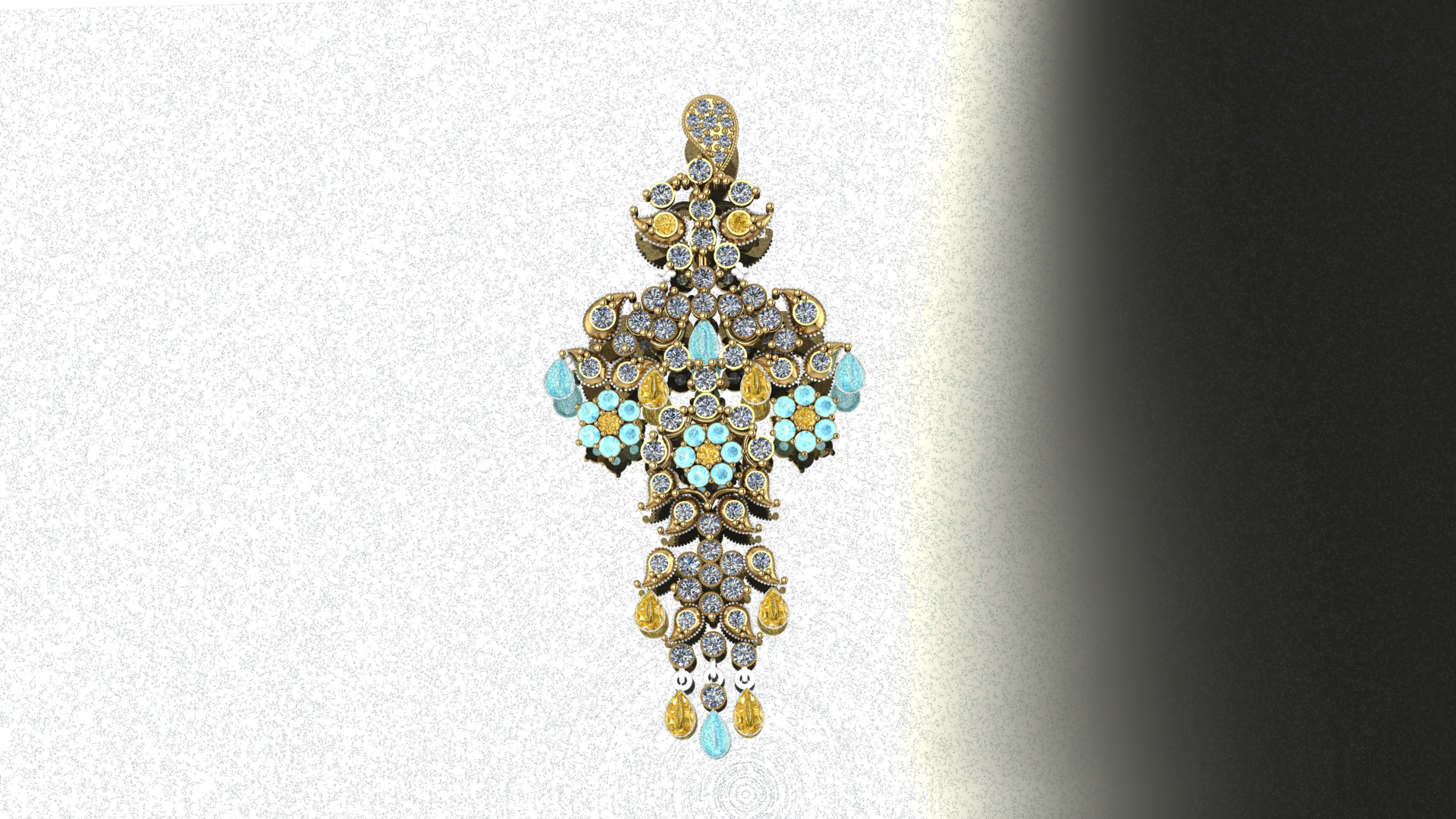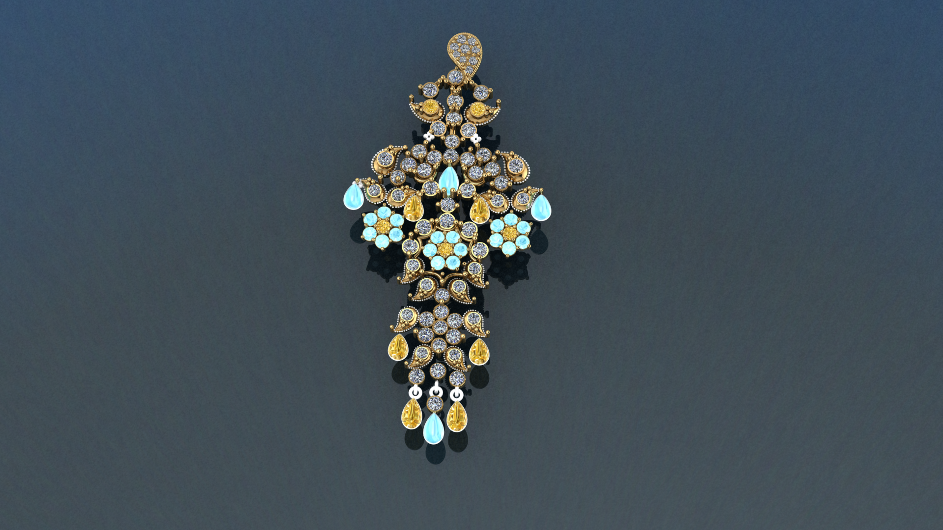 Moonwater Drizzle – Sterling Silver Pendant with White & Yellow Zircon, Blue Turquoise | SanArian Collection